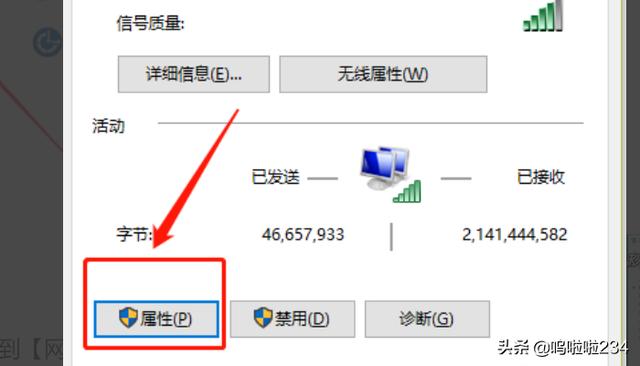 5、直接双击打开无线连接的网络,然后点击下方【属性】。