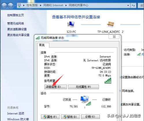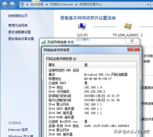 第二步、点开之后选择无线网络连接,再选择详细信息,就可以看到未改之前无线网的IP地址了。