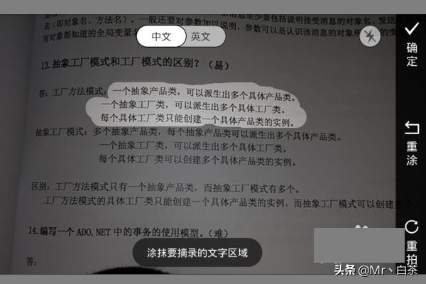 3、使用手机横向拍摄,尽量在光线好的地方拍摄,因为这可以提高识别率。拍完以后涂抹你想录入到手机上的文字,涂完点击“确定”。