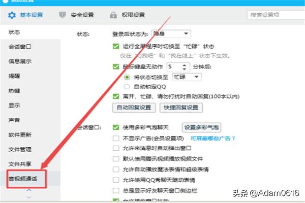 然后在打开的页面中点击左侧的 音视频通话 选项;在打开的页面中往下拉,然后打开摄像头即可。