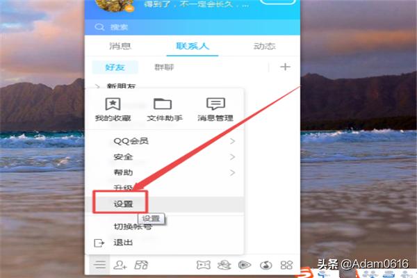方法三:登陆腾讯QQ之后,点击主面板左下角的 主菜单 图标,咋弹出的页面中点击 设置 选项。