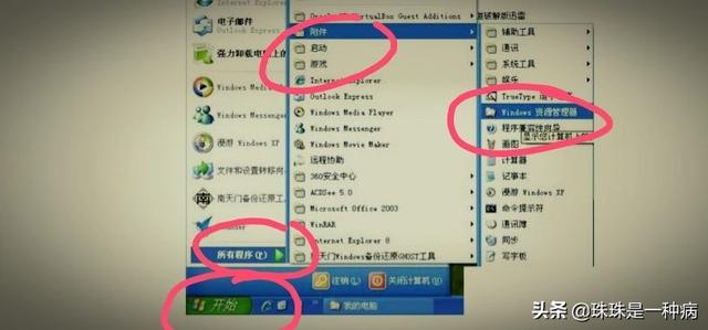 2、第二种方法,可以在电脑右下角“开始”处点击,然后找到“所有程序”选项,再在里面找到“附件”点击打开,再在里面找到“资源管理器”打开即可,同样打开之后在显示界面输入“explorer.exe”命令,点确定,就可以了。