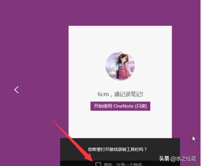 2、接下来在应用窗口的状态栏中,同时按下快捷键“win+G”,在弹出的对话框中,将“您希望打开游戏录制工具栏吗”下面的复选框勾上。