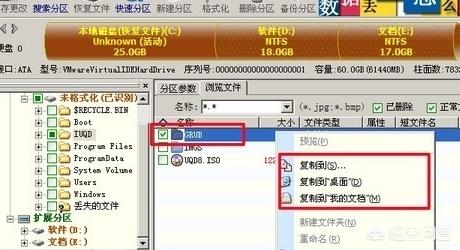 8、这时在DG工具主窗口中可以看到硬盘中删除的文件,将需要回复的文件勾选,然后右键点击,选择复制路径即可。