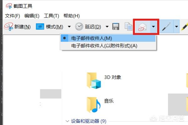 6、或者直接点击“电子邮件”图标,直接将截图发送邮件,如下图红框所示。