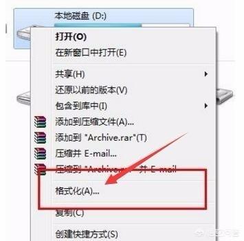 2,用右键点击需要格式化的硬盘的盘符,会弹出如下菜单,点击格式化。