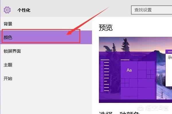 3、进入系统个性化设置页面之后,点击页面左侧的“颜色”按钮,点击系统颜色设置界面,在该页面中我们就可以设置系统的窗口颜色,包括开始菜单、任务栏窗口等颜色的设置。