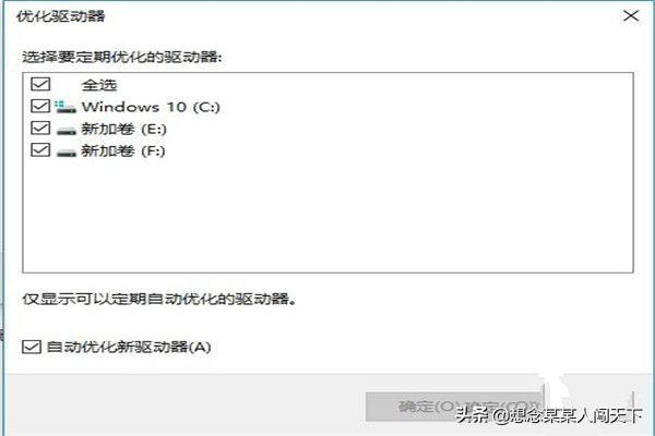8.在新打开的窗口中,选择全部驱动器就可以了。这样以后就会在指定的时间里自动的优化全部的驱动器了。