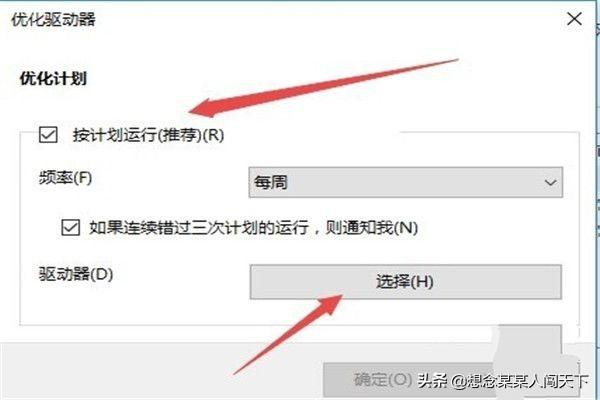 7.然后在新窗口中选择优化的频率,然后点击驱动器按钮,来选择要自动优化的驱动器。