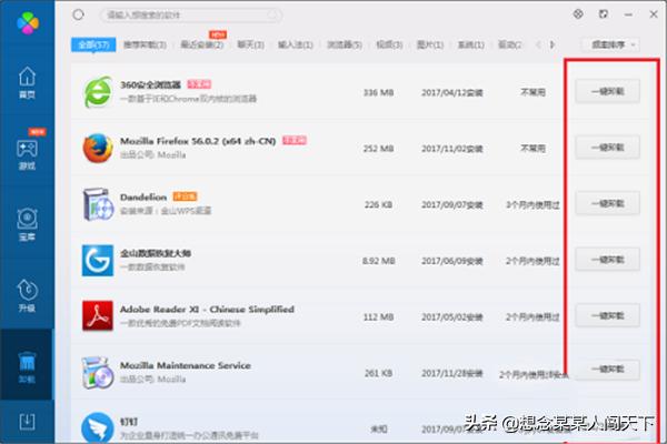 6.在软件管理的界面中,我们点击【软件卸载】选项,找到你需要卸载的软件或程序,直接点击卸载即可完全卸载。