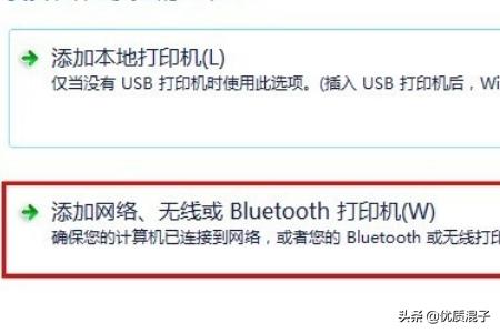 3 选择【添加网络、无线或Bluetooth打印机】