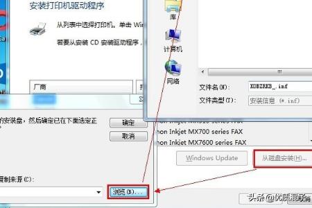 安装打印机驱动,使用【从磁盘安装】找到你柯尼卡美能达bizhub C250的驱动所在的位置确定。