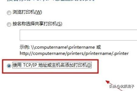 5 在【按名称或TCP/IP地址查找打印机】下面点击【使用TCP/IP地址或主机名添加打印机】