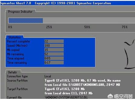 7、开始进行ghost还原,不需要任何操作。