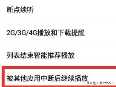 4、点击一下开启被其他应用中断后继续播放选项。