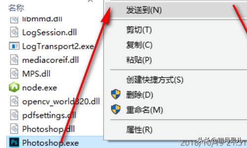 5、选中Photoshop鼠标右键,选择发送到。